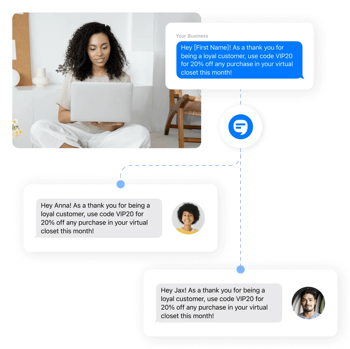 Write engaging texts, send them instantly, schedule for later, or automate recurring campaigns. Monitor replies in your inbox for one-on-one communication.
